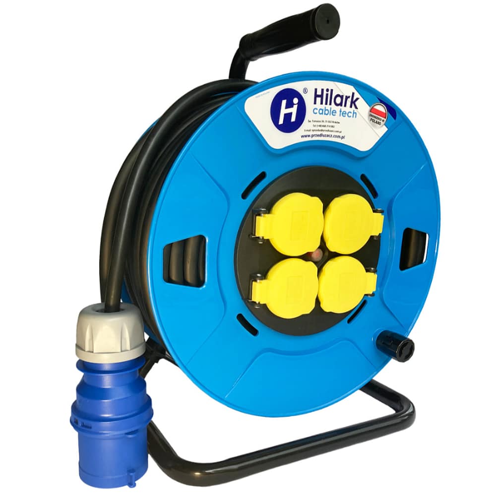Przedłużacz na bębnie z 4 gniazdami na gumowym wytrzymałym kablu 40m