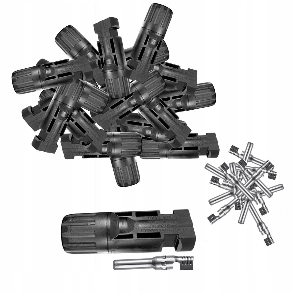 Złącze typu MC4 „+“ męskie szeregowe, przeznaczone do stosowania na przewodach solarnych. Umożliwiają profesjonalne łączenie paneli w instalacjach fotowoltaicznych.