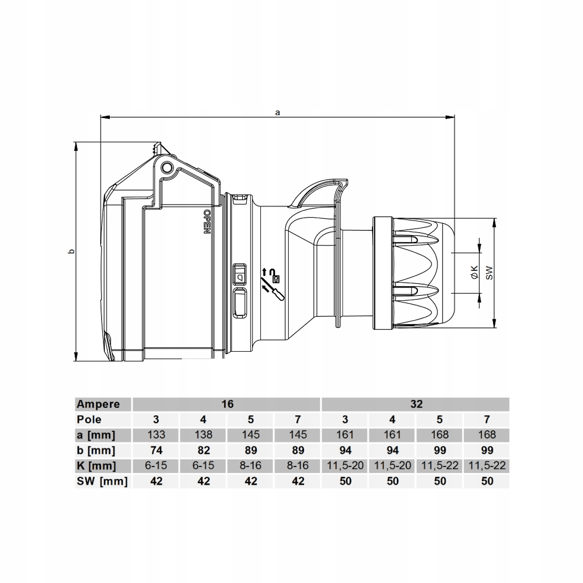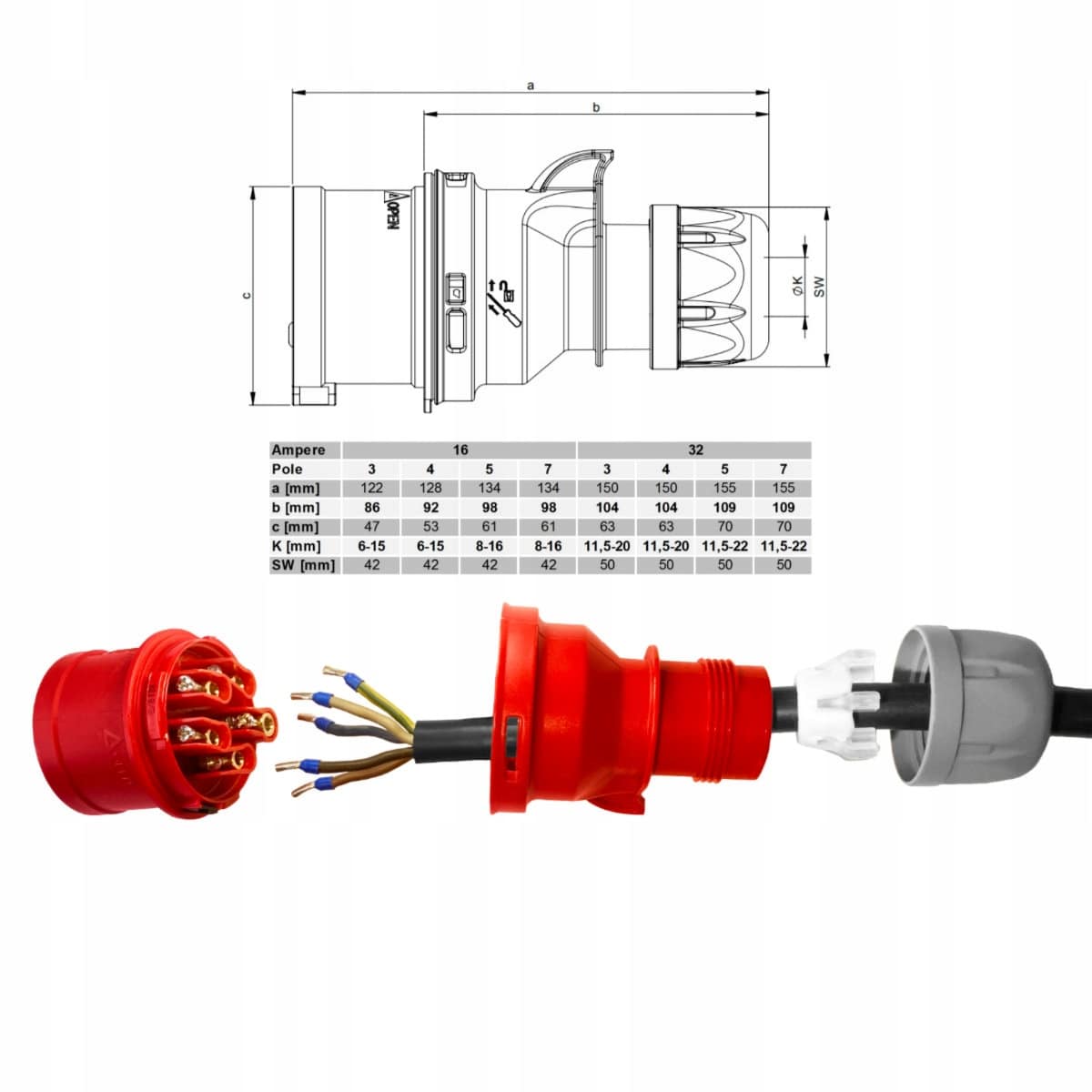 - prąd znamionowy IEC: 16A