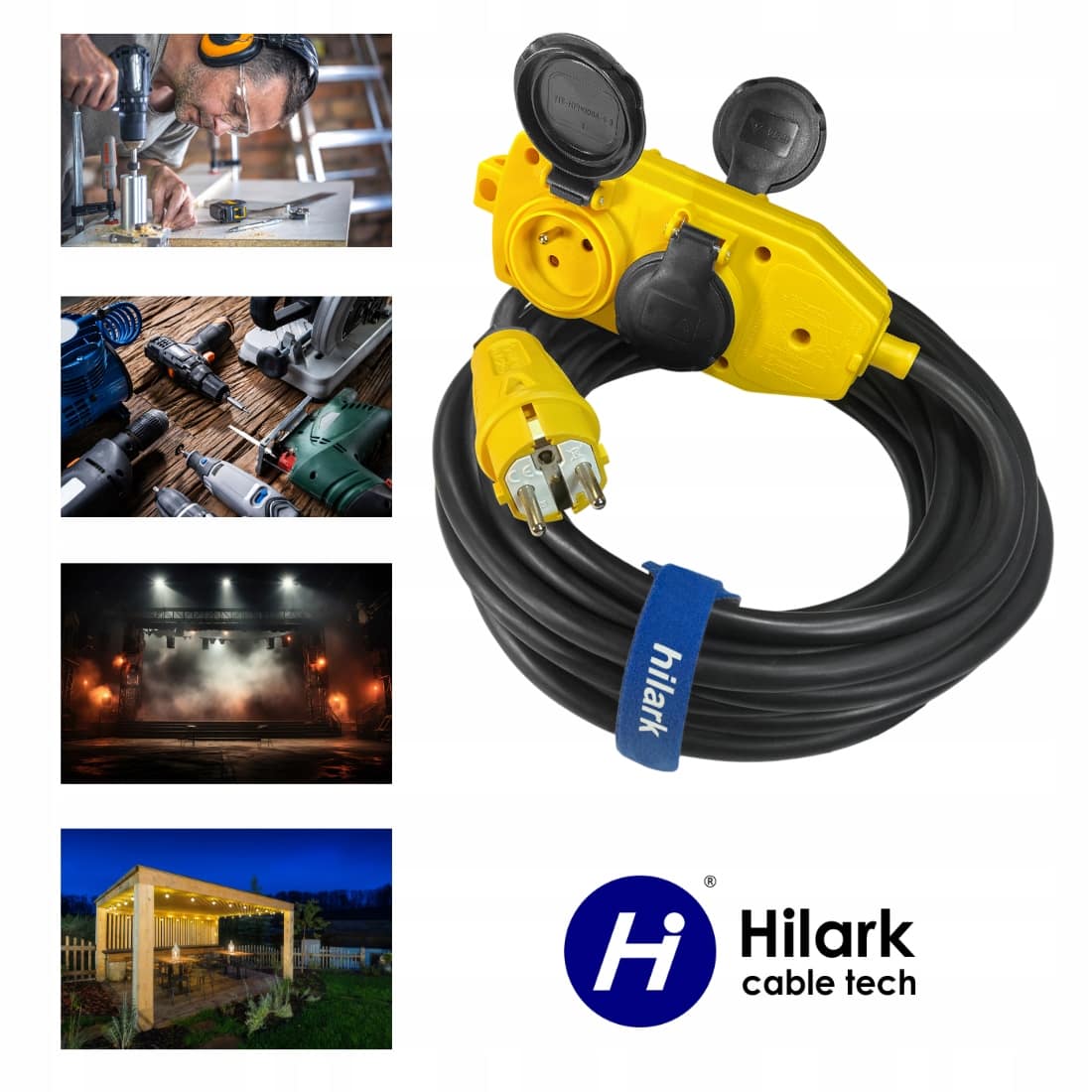 Przedłużacz elektryczny na elastycznym gumowym kablu, zapewni bezpieczną pracę w miejscach wilgotnych i mokrych; idealnie sprawdzi się też w pracy na zewnątrz; w obszarach, w których mogą wystąpić niewielkie uszkodzenia mechaniczne. Kabel gumowy w połączeniu z wysokiej klasy wtyczką PCE i rozgałęźnikiem na 4 gniazda , pozwala na bezpieczne użytkowanie przedłużacza w zmiennych, niezbyt wymagających warunkach pracy . Dzięki zastosowaniu 4 gniazd o stopniu ochrony IP44, możliwe jest rozdzielenie napięcia jak i podłączenie jednocześnie kilku urządzeń do jednego źródła zasilania (uwzględniając dopuszczalne maksymalne obciążenie) oraz bezpieczną pracę urządzeń. Dodatkowo przedłużacz posiada wtyczkę i rozgałęźnik w żółtym kolorze, jaskrawy kolor zapewnia dodatkowe bezpieczeństwo.