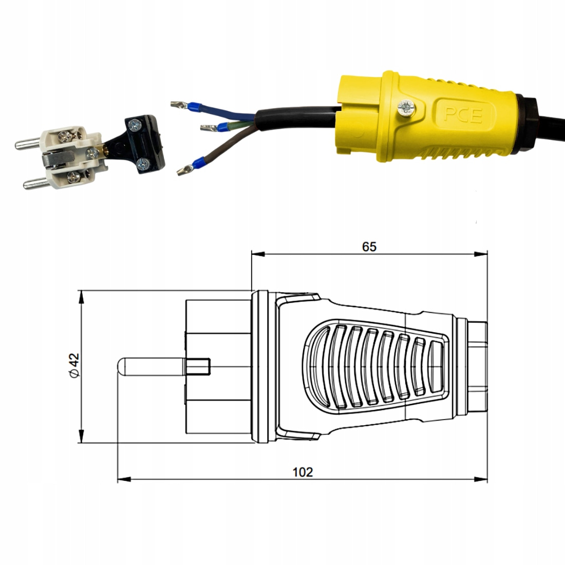 - stopień ochrony IP54: wysoki stopień ochrony gwarantuje odporność wtyczki na pył i zachlapania