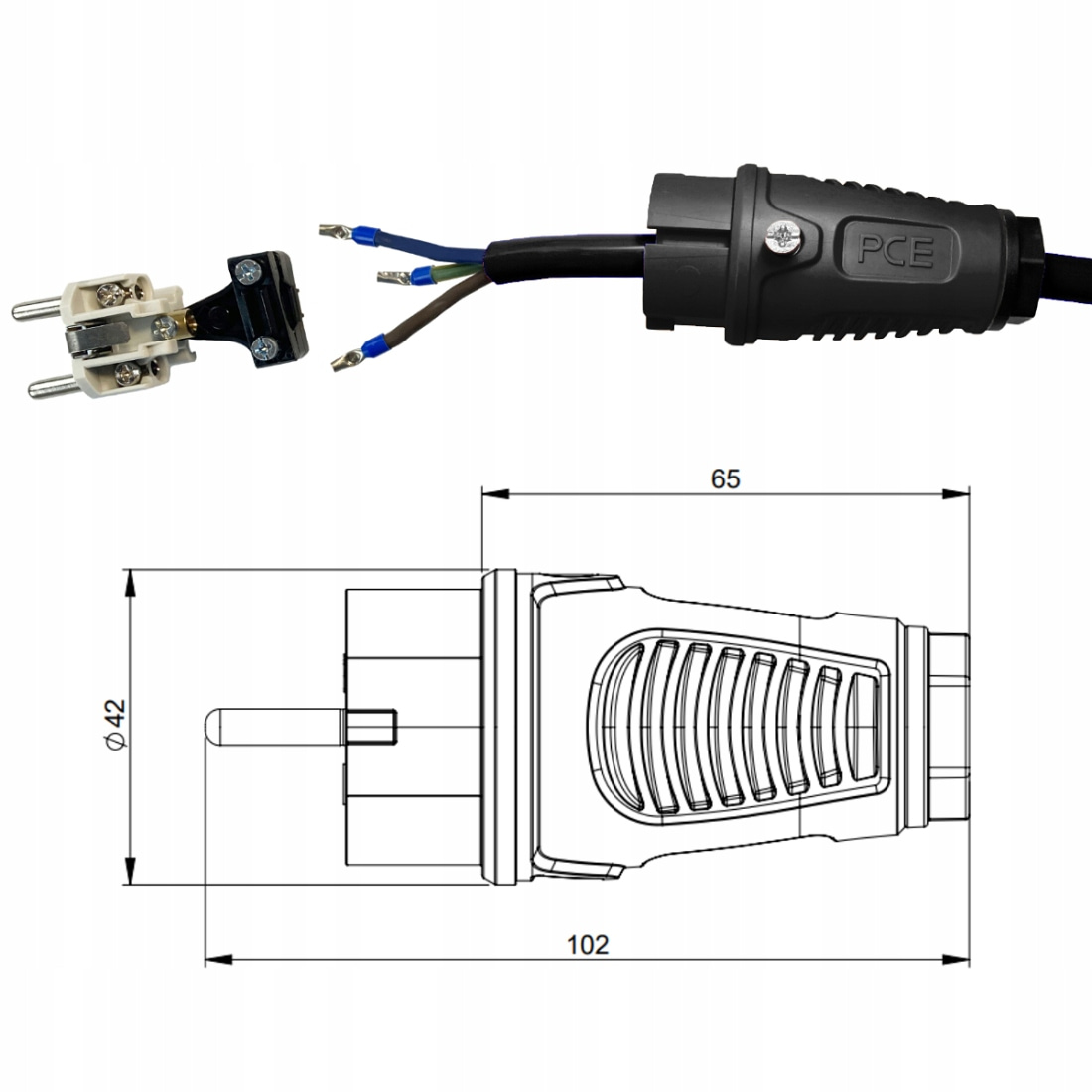 - Wtyczka: PCE 0521-SS, 16A, 400V, IP54