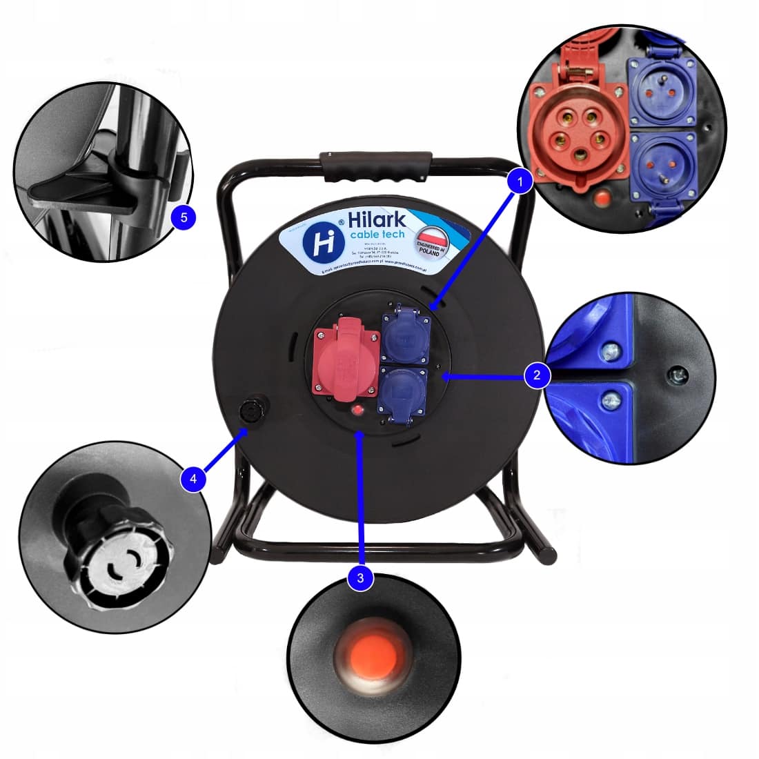 gniazda: – 1x16A 400V 5P IP44-2x16A 230V 2P+Z IP44