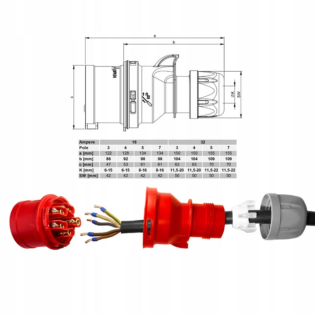 wtyczka ze zwrotnicą faz ekskluzywnej marki PCE 16A 5P 400V