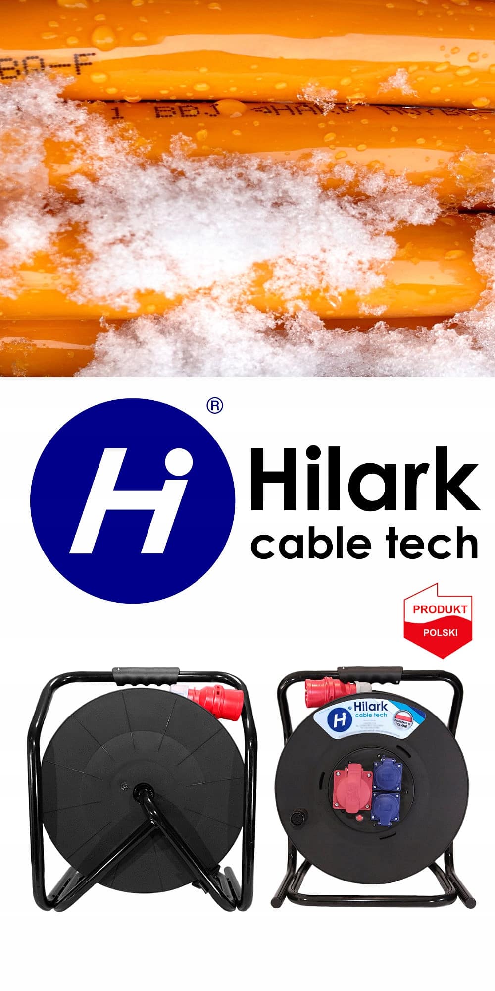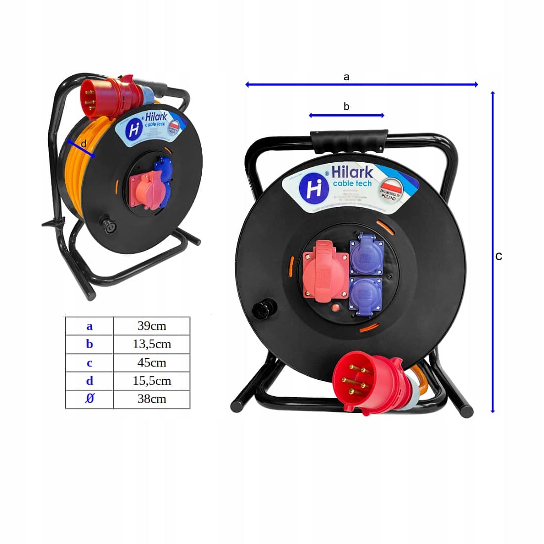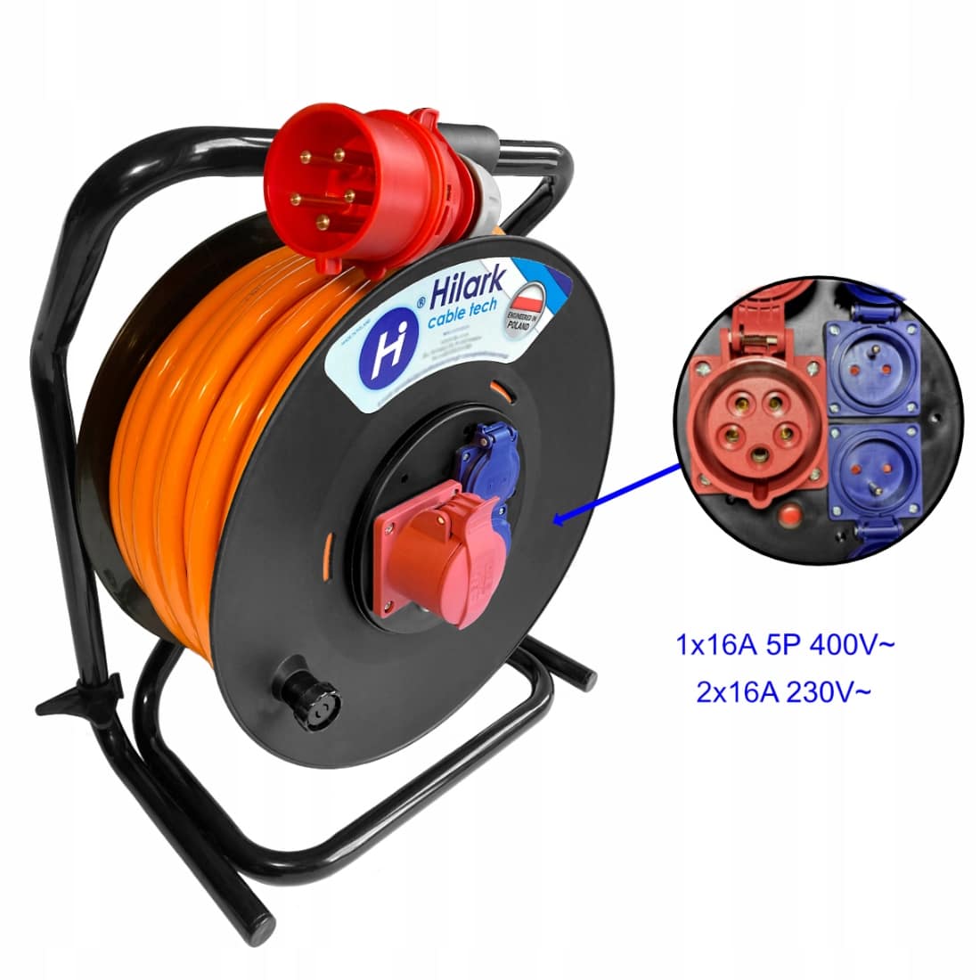 Hilark przedłużacz siłowy na bębnie z wtyczką 16A 5P, poliuretanowy PUR 5g2,5 pomarańczowy 45m