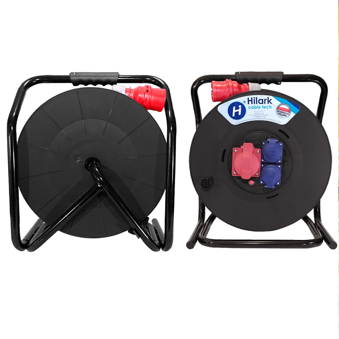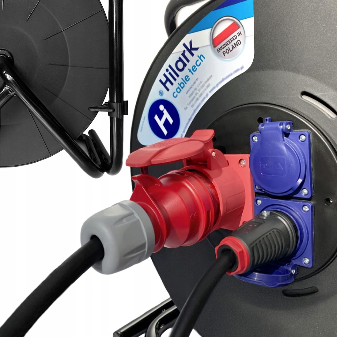 Przedłużacz siłowy poliuretanowy na bębnie,o standardzie ochrony IP44 zapewni bezpieczną pracę w miejscach mokrych czy wilgotnych, przeznaczony także do zastosowań zewnętrznych; i do połączeń dla maszyn i obiektów w obszarach, w których mogą wystąpić uszkodzenia mechaniczne, naprężenia wilgoć i pyły. Solidnie wykonany bęben umożliwia szybkie i łatwe rozwijanie i zwijanie przewodu przedłużacza, a dzięki ergonomicznej, gumowanej rączce pozwala na jego wygodne przenoszenie w pożądane miejsce. Dzięki zastosowaniu bębna z trzema gniazdami możliwe jest rozdzielenie napięcia jak i podłączenie jednocześnie kilku urządzeń do jednego źródła zasilania. Doskonale sprawdzi się jako wyposażenie warsztatów przemysłowych, rolniczych, w stoczniach, do podłączenia elektronarzędzi (wiertarki, piły tarczowe, przenośne silniki i generatory) do urządzeń budowlanych, rolniczych i komercyjnych. Niezbędny w miejscach gdzie potrzebny jest niezawodny wytrzymały kabel i przesył energii trójfazowej.