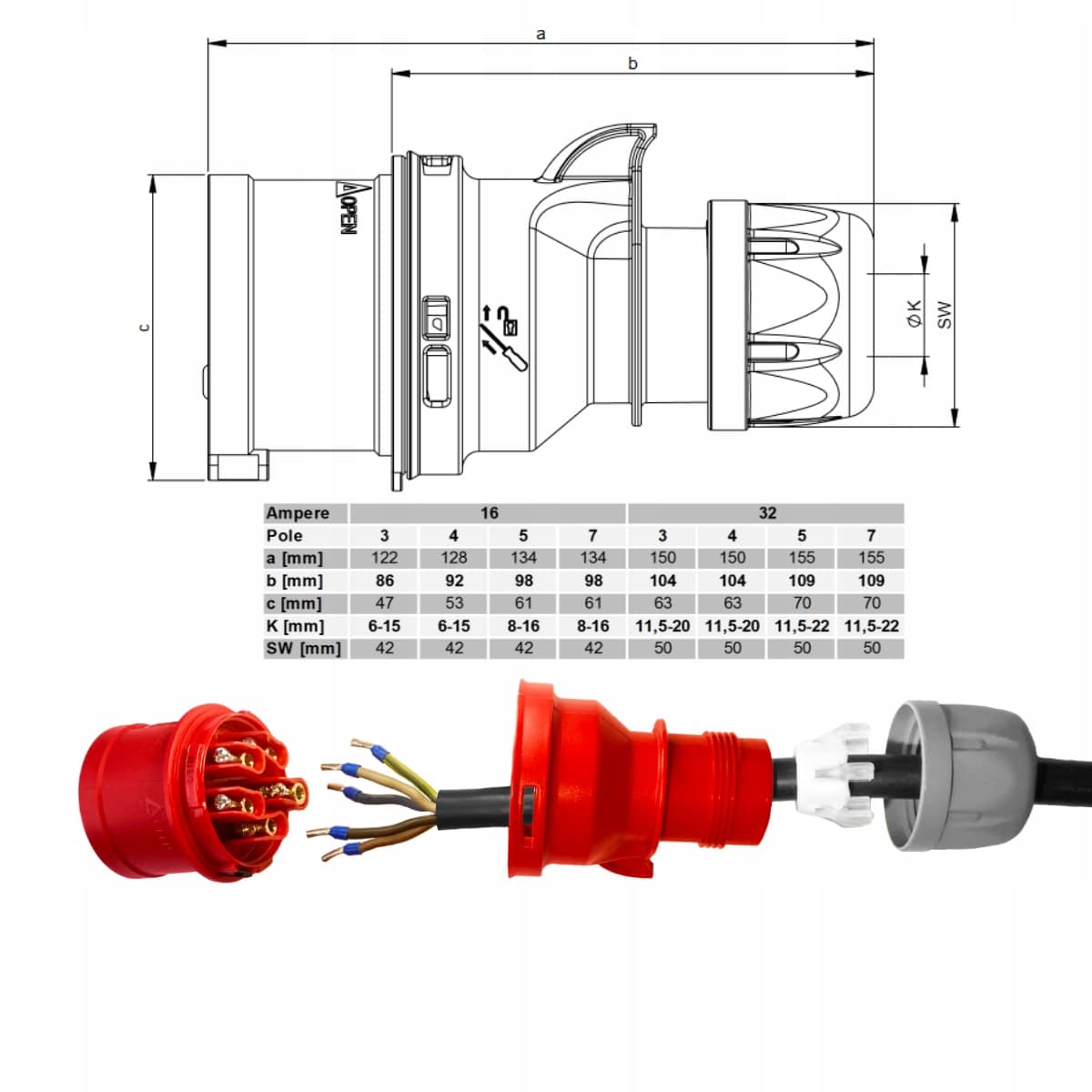 - wtyczka posiada obudowę z materiału typu PA6, który zapewnia długą żywotność wyrobu,