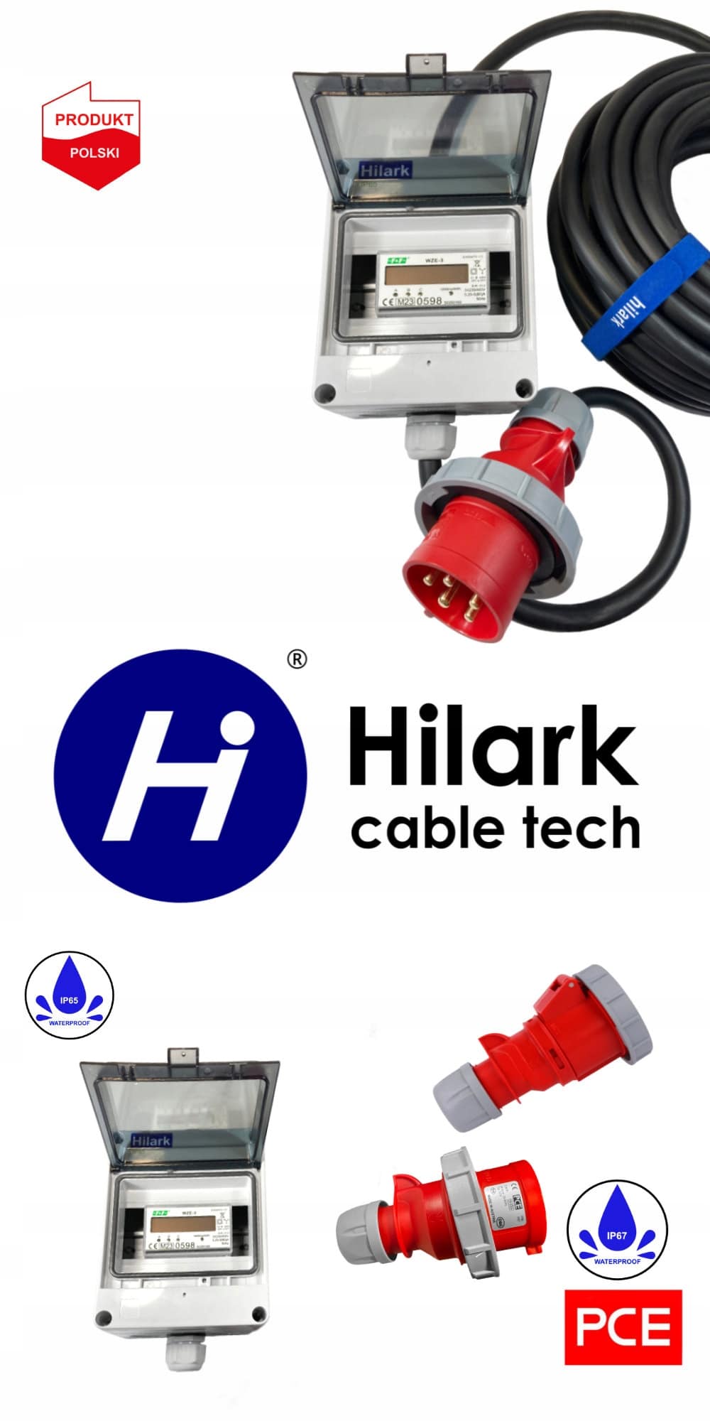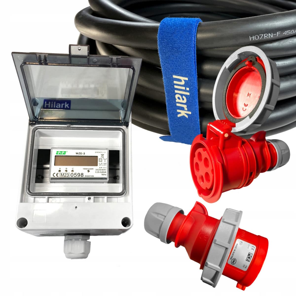 ZASTOSOWANIE: do dużych instalacji ogrzewania, płyt grzewczych, oświetlenia alarmowego, narzędzi elektrycznych takich jak wiertarki, piły tarczowe, silniki elektryczne, sprzęt sceniczny i audiowizualny, sprzęt przeładunkowy, mobilne zasilacze, do różnego rodzaju wysięgników. Kabel neoprenowy H07RN-F 5×4 wraz z wysokiej jakości gniazdem i wtyczką PCE o wysokim, stopniu odporności IP67, pozwala na bezpieczne użytkowanie przedłużacza w miejscach gdzie jest narażony na oleje czy smary, w trudnych warunkach atmosferycznych, w suchych i wilgotnych miejscach zarówno wewnątrz jak i na zewnątrz pomieszczeń. Natomiast zainstalowany w rozdzielnicy o wysokim stopniu wodoszczelności IP65 wskaźnik, pozwoli na kontrolę zużycia energii elektrycznej.