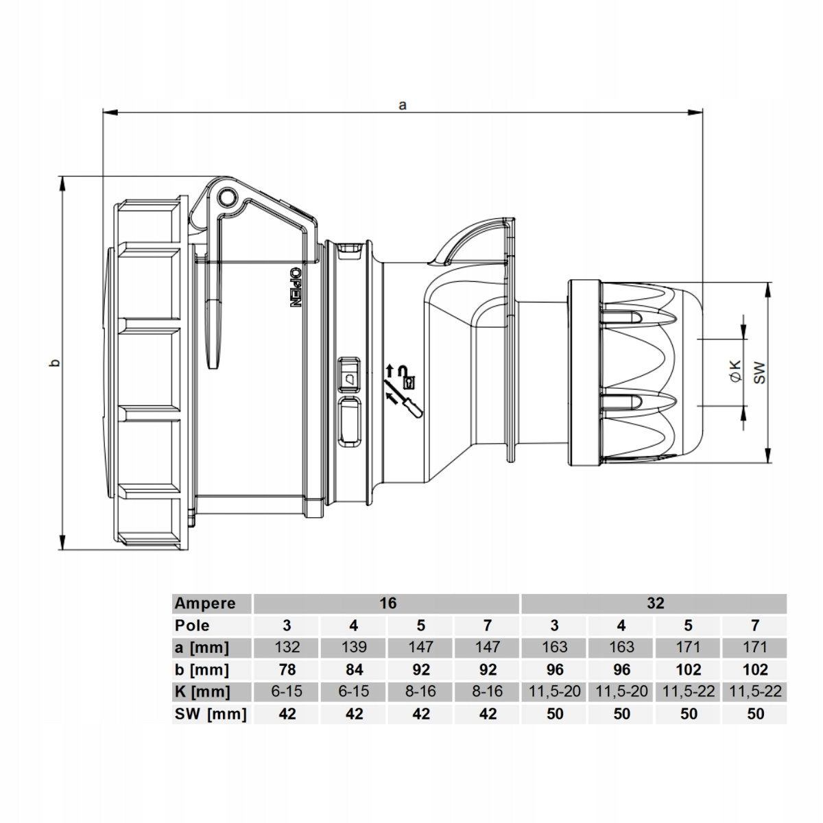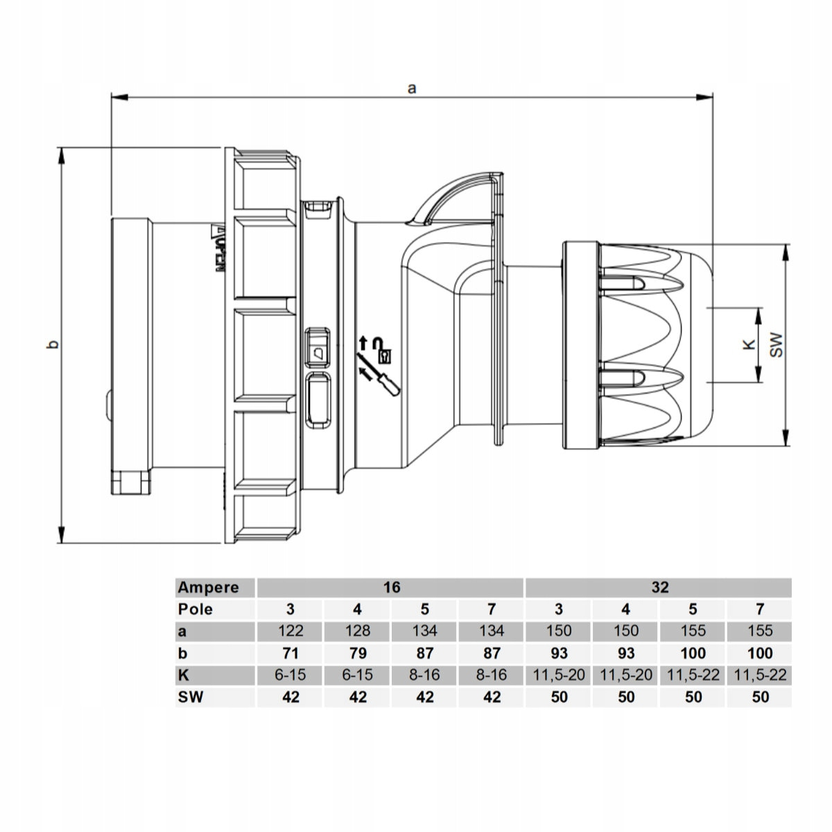 - prąd znamionowy IEC: 32A