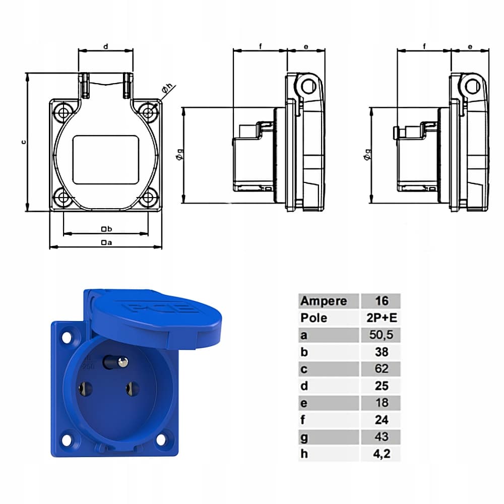 - 2 gniazda tablicowe PCE 1040-0b 16A 230V IP44