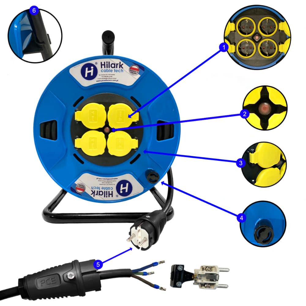Przedłużacz wykonany na bazie kabla neoprenowego 3g2,5, świetnie sprawdzi się zarówno na zewnątrz jak i w zamkniętych pomieszczeniach, w miejscach wilgotnych, suchych, zimnych, w trudnych warunkach pracy. Do połączeń dla maszyn i obiektów w obszarach, w których mogą wystąpić średnie uszkodzenia mechaniczne, naprężenia, wilgoć, pyły, smary i oleje. Solidnie wykonany bęben umożliwia szybkie i łatwe rozwijanie i zwijanie przewodu przedłużacza a dzięki ergonomicznej, gumowanej rączce pozwala na wygodne przenoszenie w pożądane miejsce. Dzięki zastosowaniu bębna z czterema gniazdami możliwe jest rozdzielenie napięcia jak i podłączenie jednocześnie kilku urządzeń do jednego źródła zasilania, mając na uwadze maksymalne obciążenie przedłużacza.