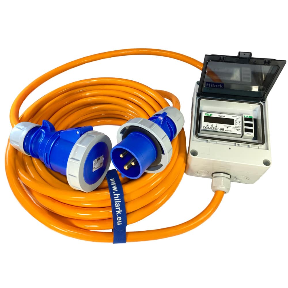 Przedłużacz siłowy do kampera z licznikiem zużycia energii elektrycznej i woltomierzem, stopień ochrony IP65 25m