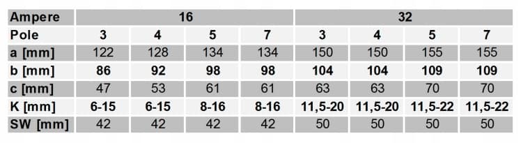 Napięcie zgodnie z EN 60309-2: 380-415 V (50+60 Hz) czerwony